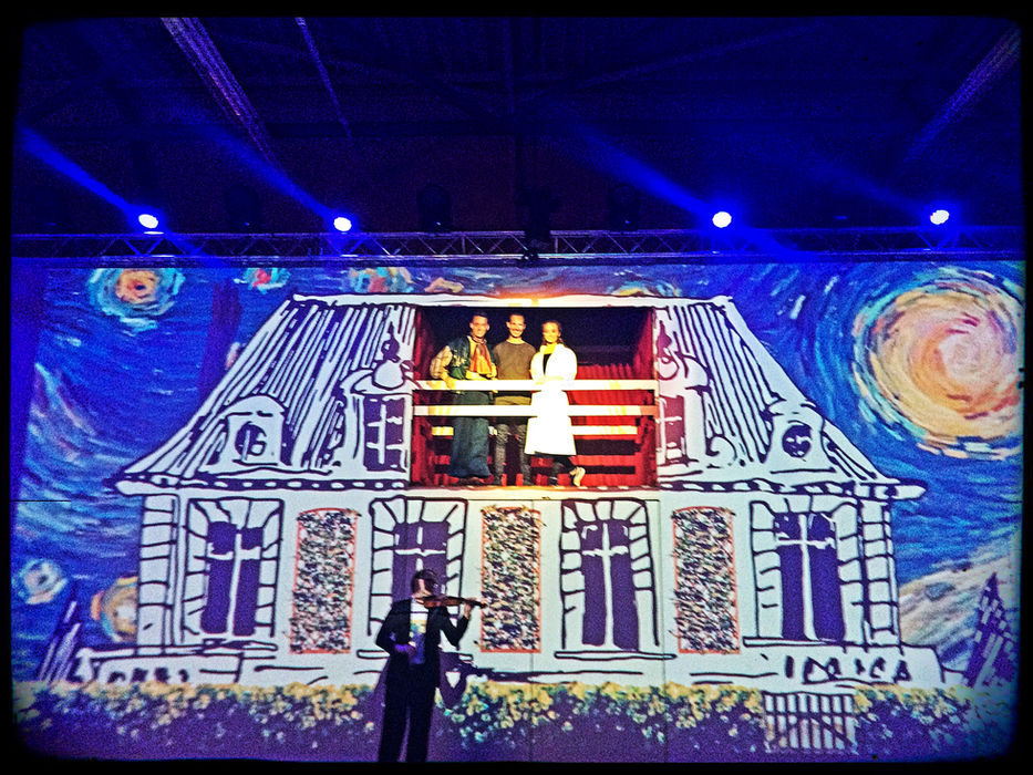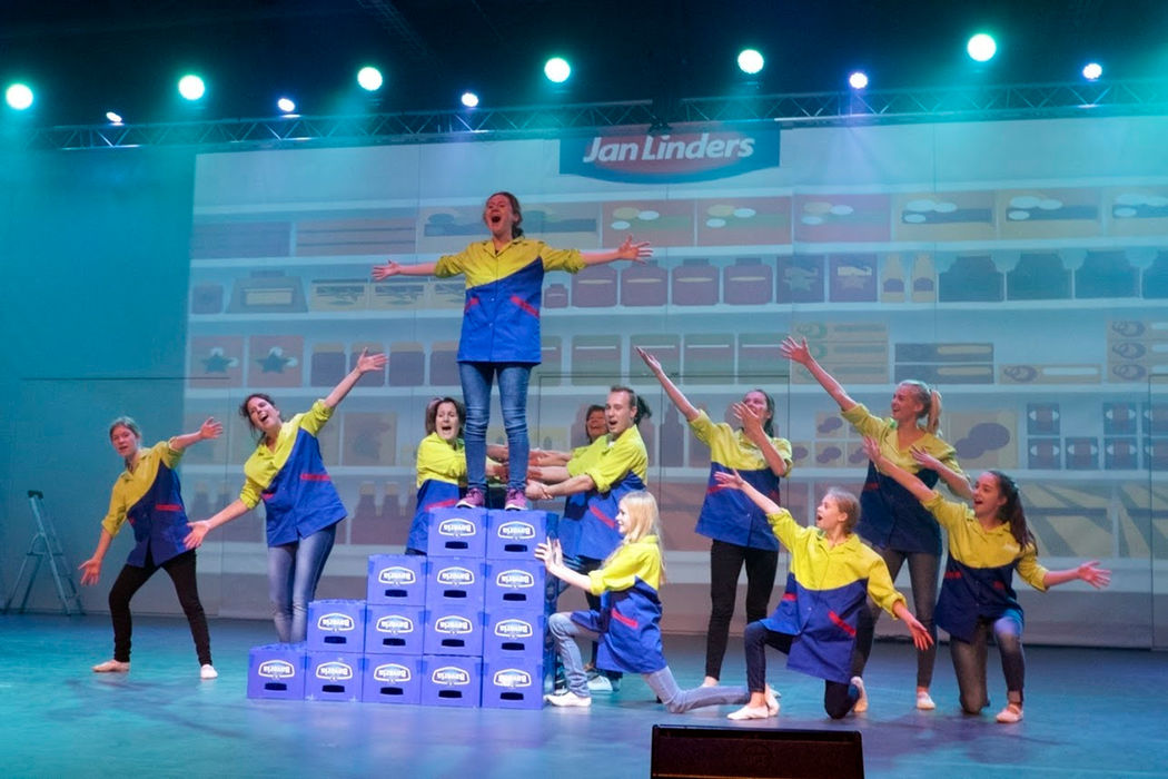 En dus ging ik met een enorme groep professionele, enthousiastelingen die zingen, dansen, musiceren en acteren aan de slag. De sporthal werd omgebouwd tot theater.